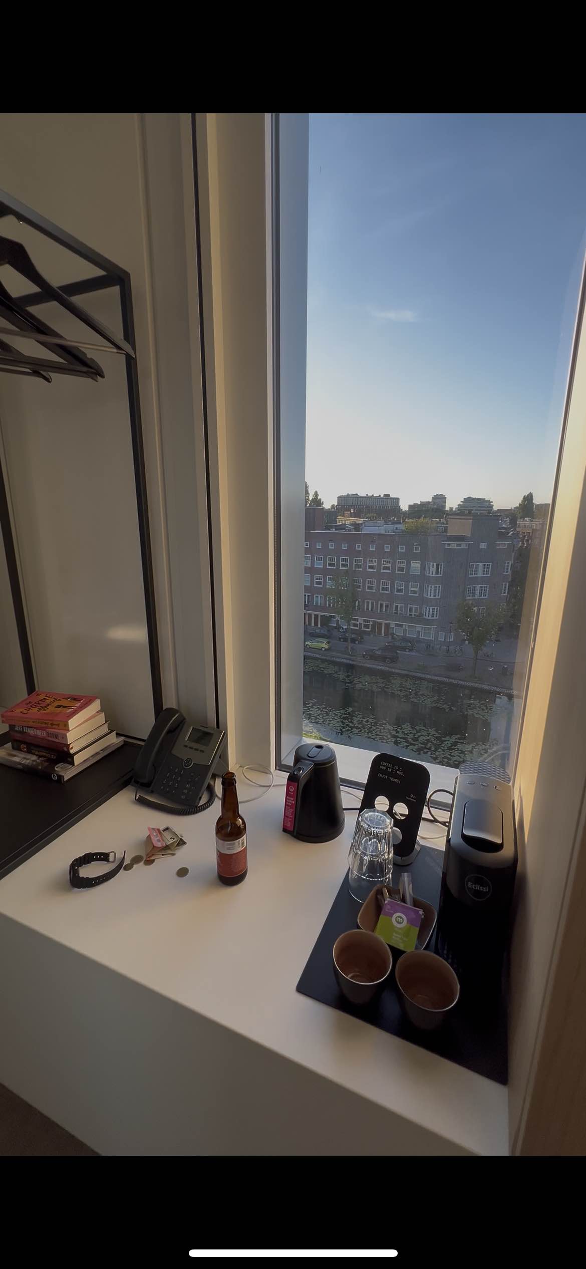 Nice well kept hotel. 8 min walk to Amstel station. I asked for a view facing the lake which they accommodated even though the hotel was full. The room wasnt cool enough as they have sustainable cooling but they provided a fan which comfortable enough